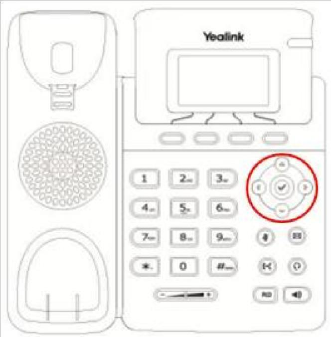 View the IP Address of the Phone: On the device's keypad, select the “V” button in the middle as shown in the image.