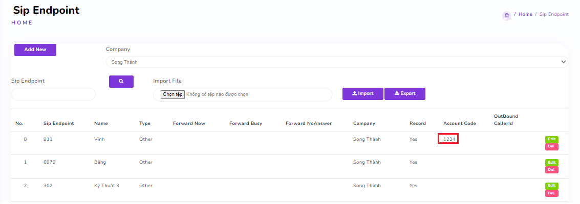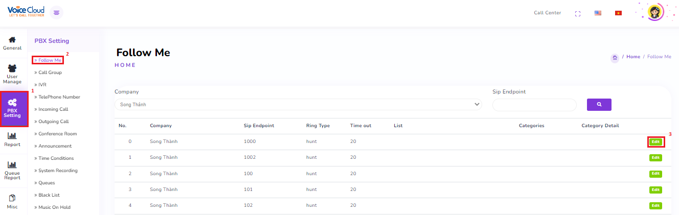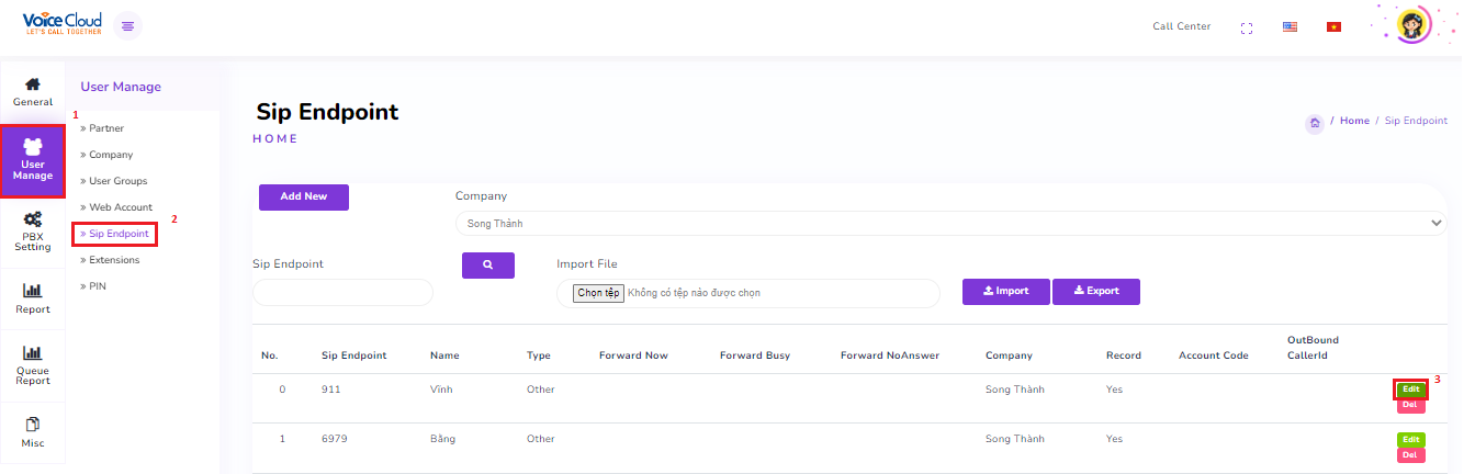 Select “User Management” → “SIP Endpoint” → Choose the “Extensions” where you want to add the PIN → Click “Edit”