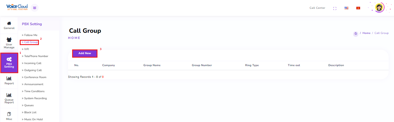 Select “Add New” to create a new Call Group or choose “Edit” to modify existing Call Groups.