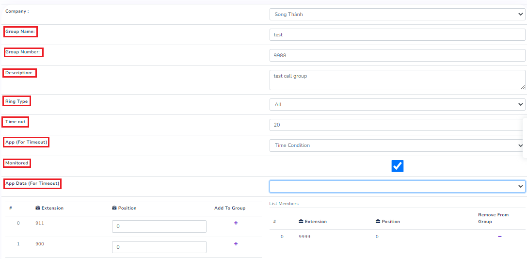 App (For Timeout): Specify the next action for the system when the group’s maximum ringing time expires.