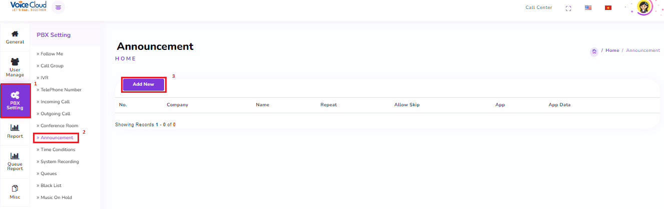 2.1 Follow Me 2.2 Call Group 2.3 Create IVR 2.4 Edit Incoming Call Settings 2.5 Create Announcement 2.6 Upload Greeting File 2.7 Create Time Condition 2.8 Create Queue