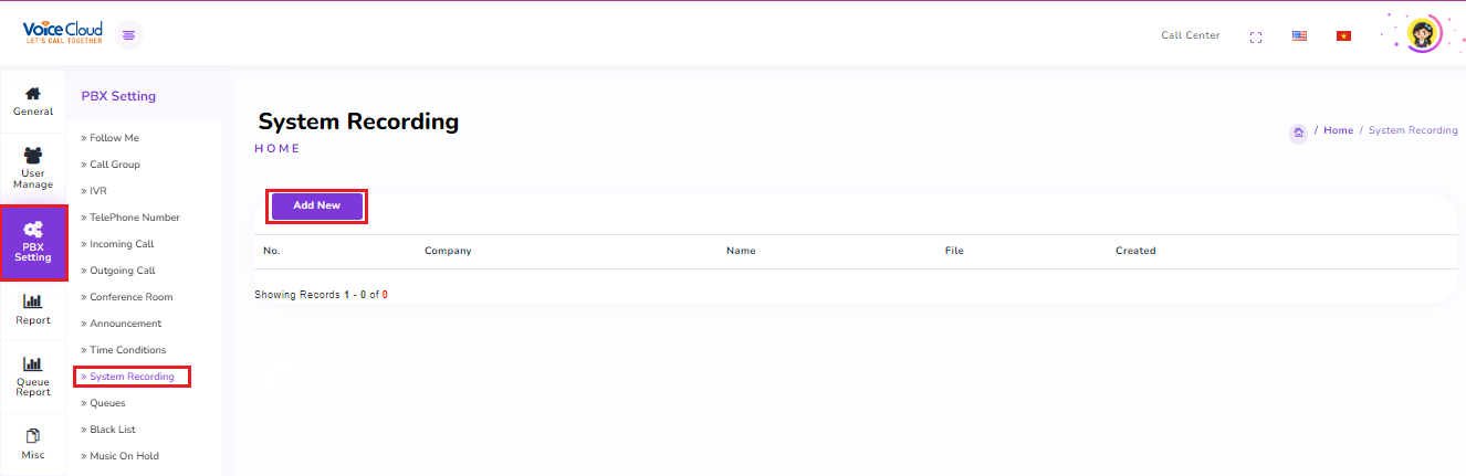 In the "PBX Settings" tab, select "System Recording"