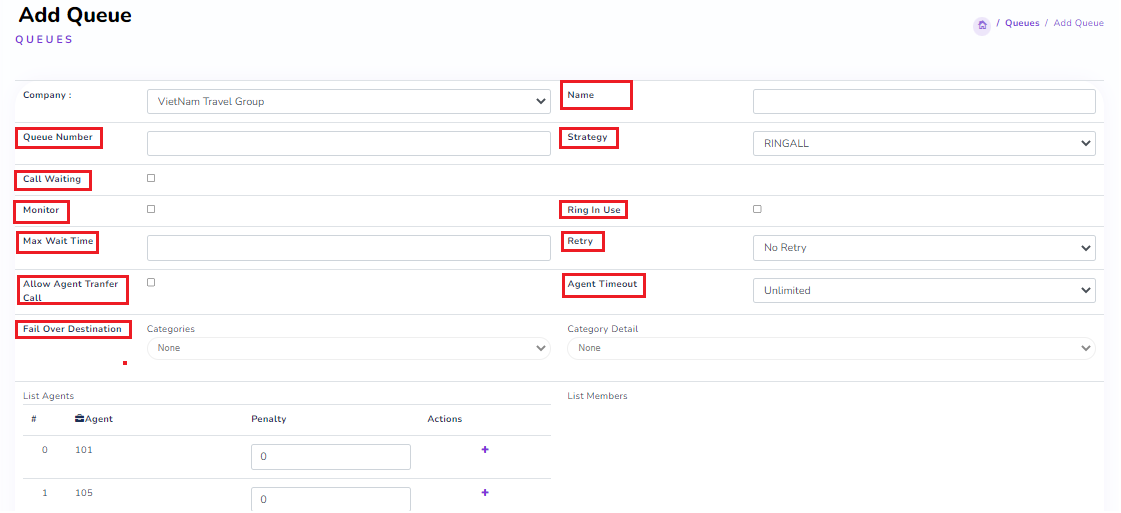 Agent Timeout: The ringing duration for an agent.