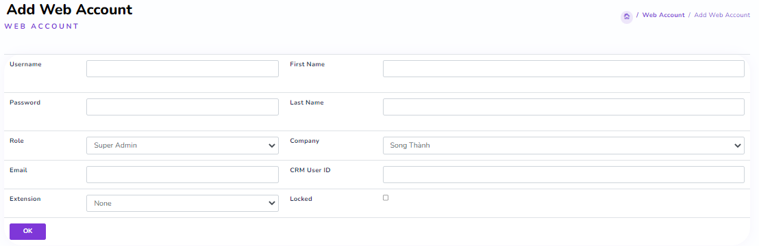 Username: Login name for the system. (Required) Password: Login password. (Required) First Name & Last Name: Full name (Optional) Role: In order of priority (Supervisor Group > Admin Group > Reception Group > Agent Group)
