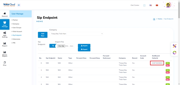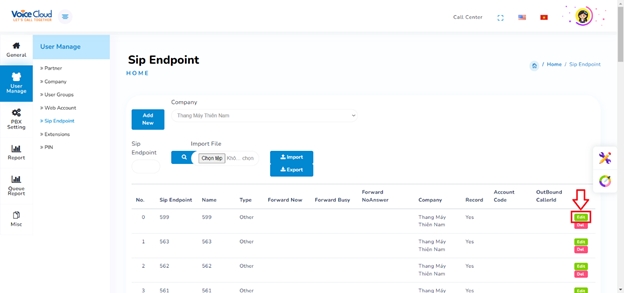Log in to the portal, select “User Management” → “Sip Endpoint” as shown in the image.